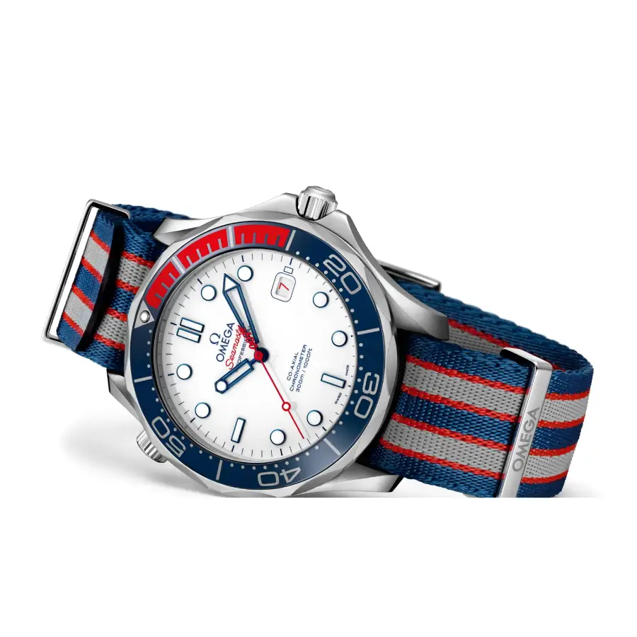 Salute the maritime heritage of the world’s most famous commander with the Omega Seamaster “Commander’s Watch” 007 Exclusive Super Clone, available only at Chronetti. This 1:1 high-end masterpiece captures the patriotic aesthetic of the British Royal Navy, featuring a perfectly balanced 41mm 904L stainless steel case. Designed for the elite collector and Bond enthusiast, our Super Clone stands out with its brilliant polished white ceramic [ZrO2] dial and bold blue and red accents.
