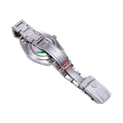Crafted with a 41mm solid 904L stainless steel case adorned with stones and a radiant diamond-paved dial, this masterpiece shines like a true jewel. Powered by a Swiss automatic movement, it delivers exceptional accuracy and a smooth sweeping seconds hand, mirroring the genuine timepiece with precision.